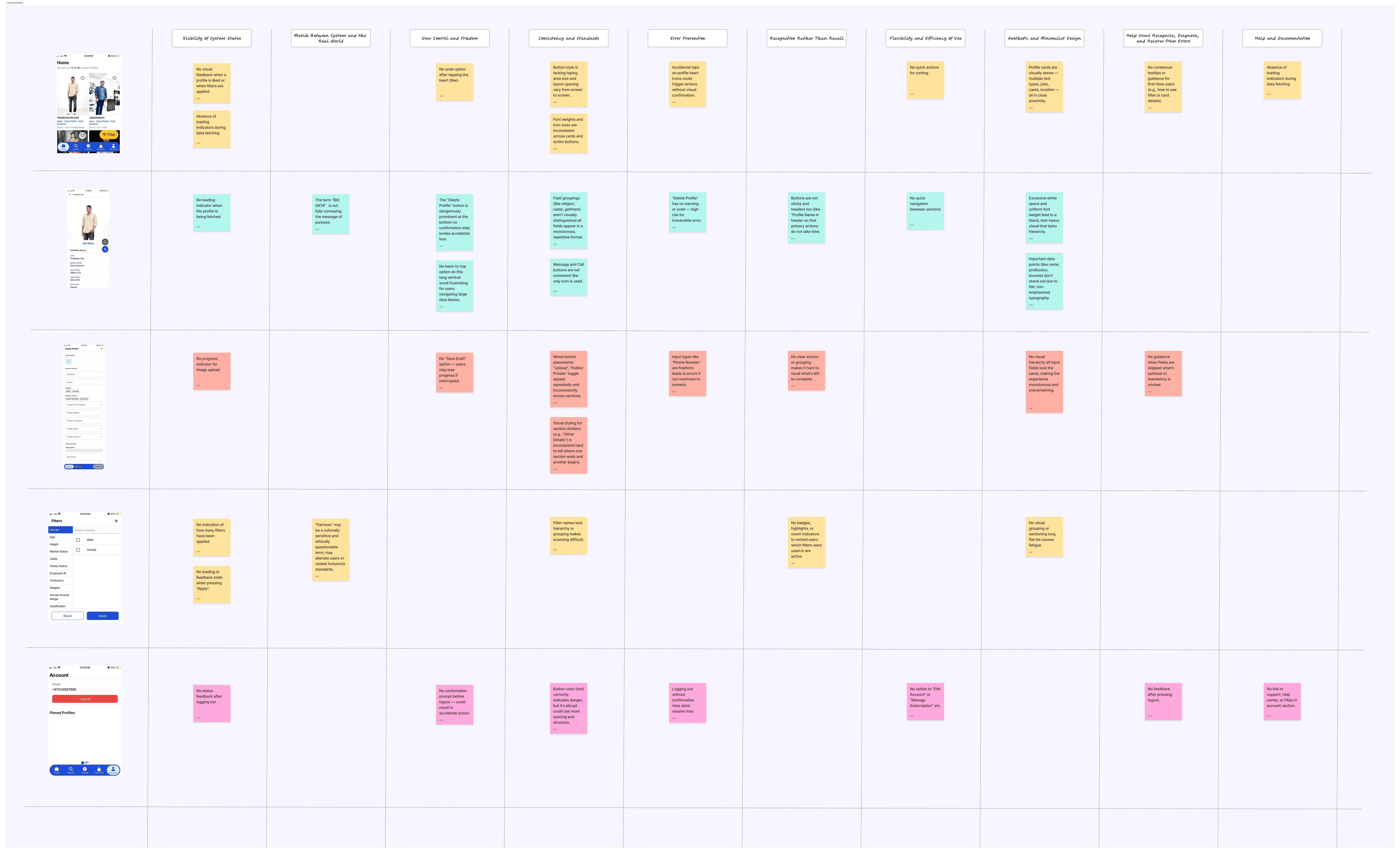Alongside this, I performed a heuristic evaluation of the existing app, uncovering usability issues like: