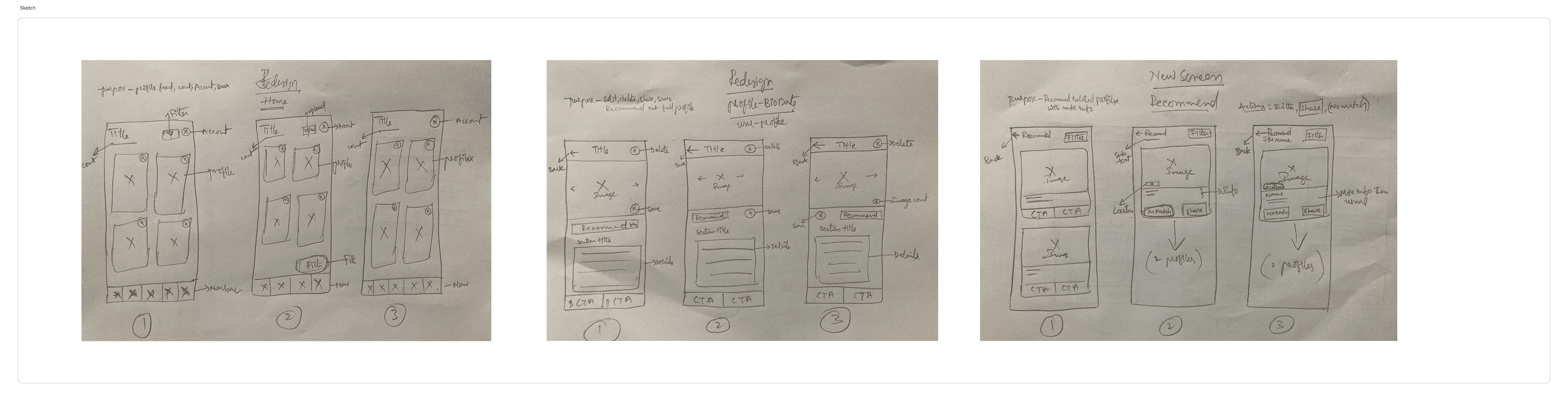 I started by restructuring the Information Architecture and redesigning key user flows, from adding clients to recommending matches. Then, I sketched low-fidelity wireframes to visualize the experience.